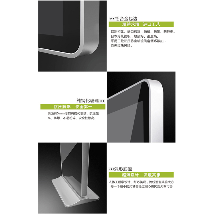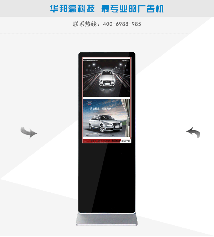 產(chǎn)品簡介:完美的視覺表現(xiàn)!實現(xiàn)廣告在消費人群的精準投放,品牌展示和推廣的有效窗口,適合擺放在品牌專賣店、連鎖加盟店、高檔酒店及各種公共場所做品牌宣傳展示之用,也可以用于地鐵等場所成為公共事業(yè)推廣的窗口。